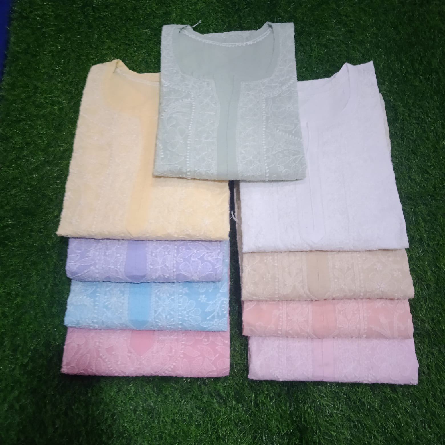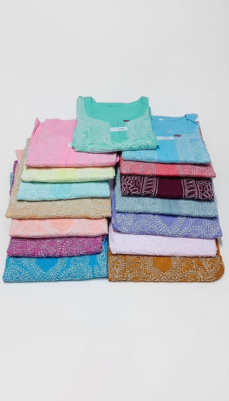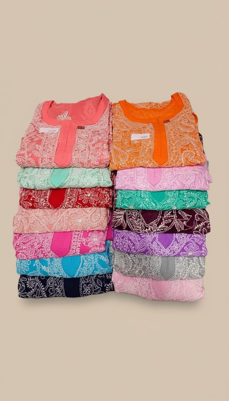 LCF LUCKNOW CHIKAN Rayon Neck Dori LONG KURTI (NAVY BLUE)