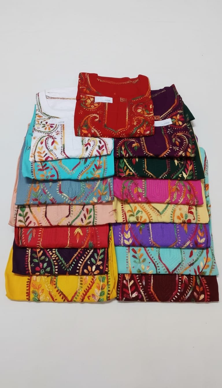 LCF LUCKNOW CHIKAN Rayon Neck Dori LONG KURTI (BLACK)