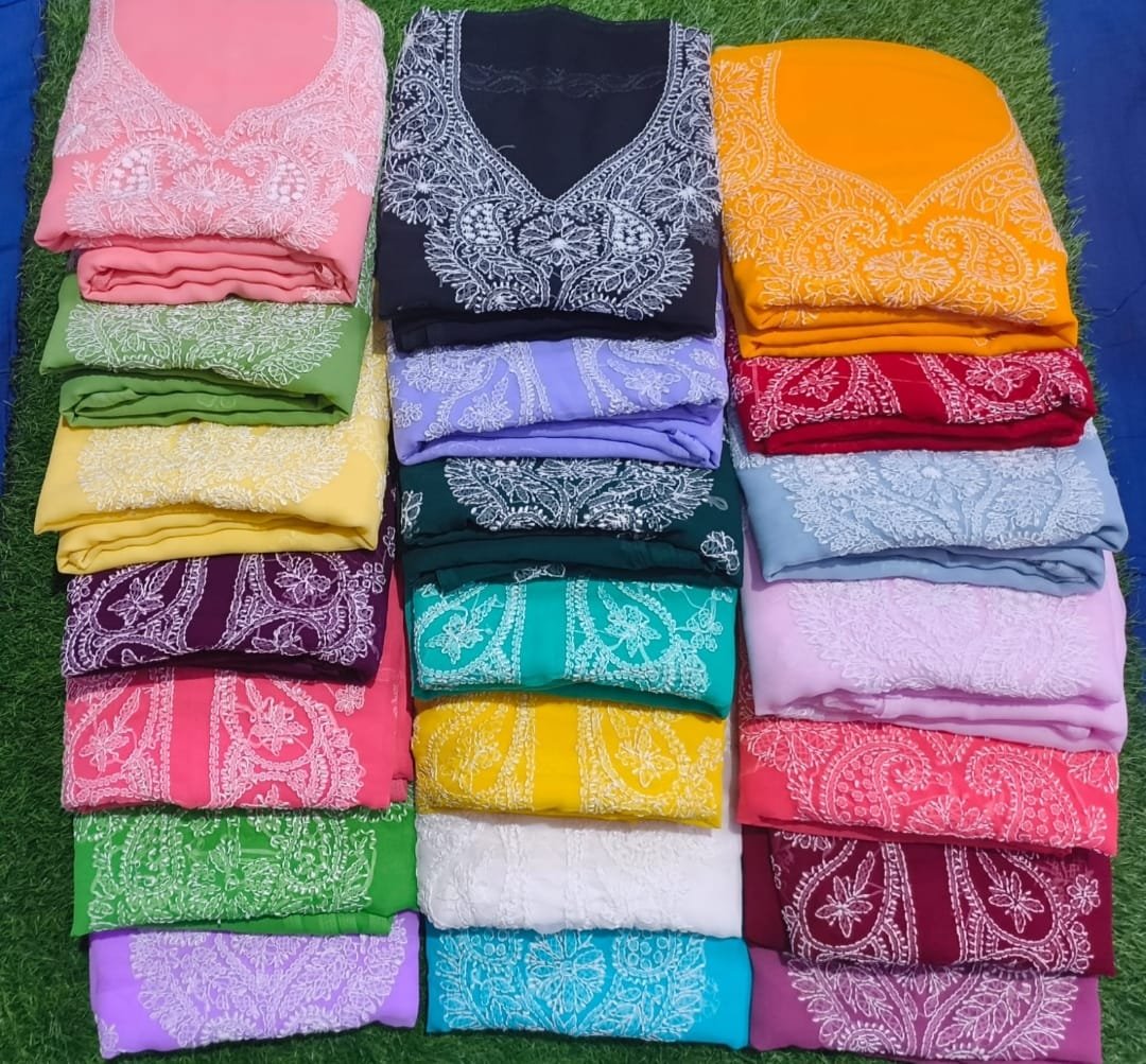 LCF LUCKNOW CHIKAN CHIFFON DRESS MATERIAL (ORANGE)