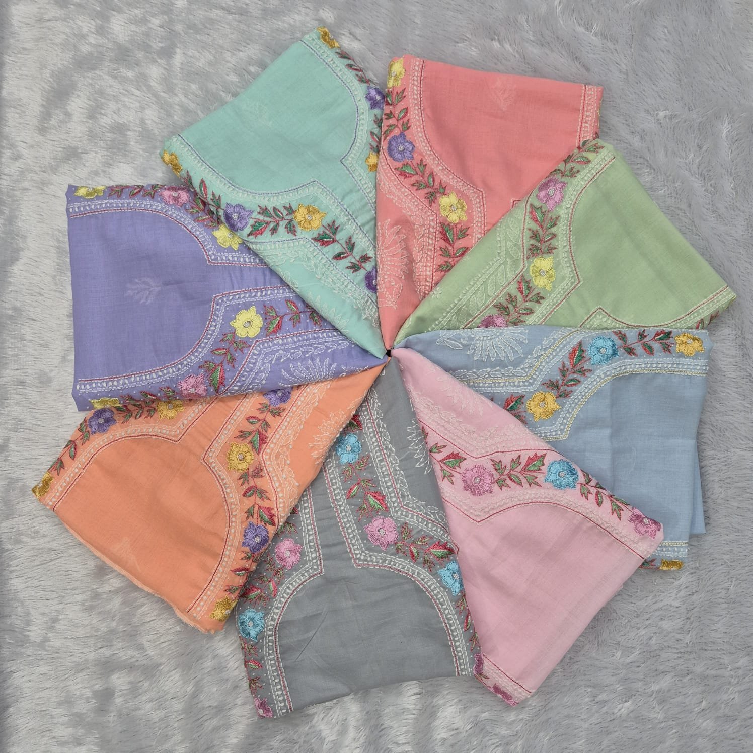 LCF LUCKNOW CHIKAN VOIL COTTON KURTI PIECE (FIROZI)